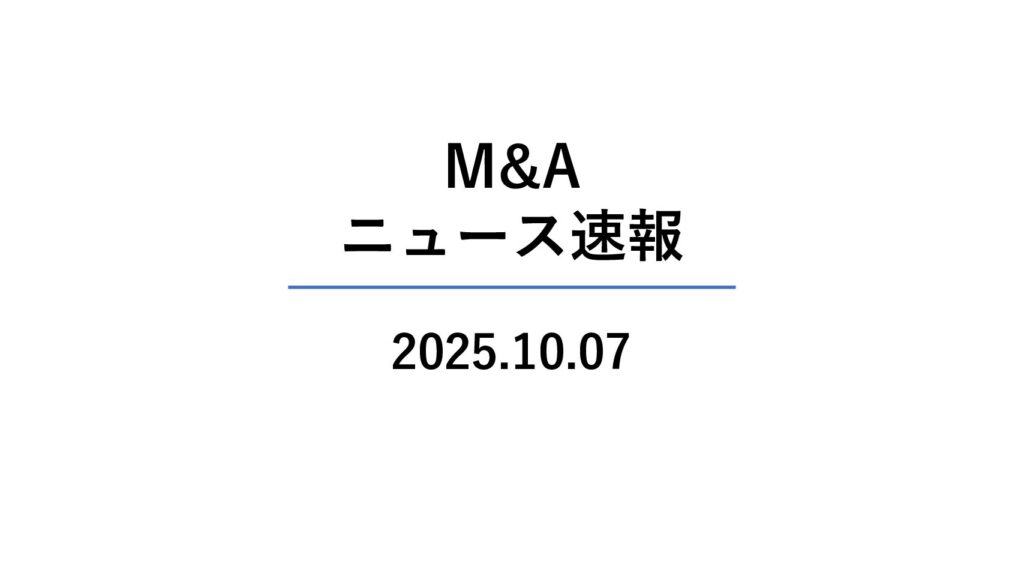 - 📰 M&Aニュース速報|2025年10月7日~10月8日発表分